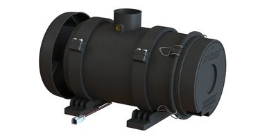 El aire fresco y los desechos ingresan al sistema pre-filtro/filtro/presurizador motorizado (se muestra el RESPA-CF2).